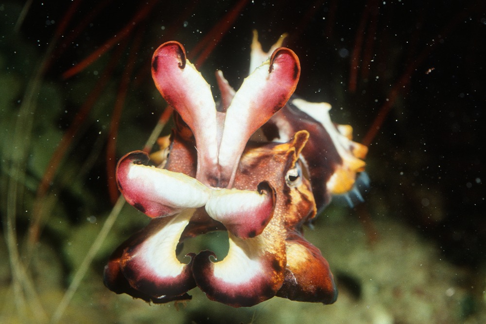 ❬ BACK TO STORIES Instagram Twitter Facebook Youtube FROM TINY EGG TO UNDERWATER CHAMELEON – THE LIFECYCLE OF THE FLAMBOYANT CUTTLE The Flamboyant Cuttlefish, known for its striking purple and yellow patterns, is a small cephalopod species that primarily inhabits the Indian and Pacific Oceans, specifically ranging from southern New Guinea to the north and West Coasts of Australia. Mating involves remarkable sexual dimorphism, with females being approximately twice the size of males. During this phase, males deposit sperm packets into specialized pouches within the female’s body cavity, a critical step in the lifecycle. Egg laying is the next phase, where the female undertakes an astonishing endeavour. She selects hidden locations to lay her clutch of up to 200 eggs. Her exceptional camouflage skills are on full display as she remains completely motionless during this crucial period. Frequently, she secures her precious cargo beneath a protective coconut shell, carefully attaching the eggs to the inner surface. http://openoceangroup.org/wp-content/uploads/2023/09/ADULT-FLAMBOYANT.mp4 Approximately 25 days later, the flamboyant cuttlefish’s lifecycle takes another remarkable turn as the eggs hatch. Miniature replicas of adult cuttlefish emerge, already displaying the species’ distinctive purple and yellow patterns from birth. These hatchlings possess immediate proficiency in camouflage and signalling, showcasing their unique abilities right from the start. http://openoceangroup.org/wp-content/uploads/2023/09/FLAMBOYANT-EGG.mp4 Beyond their captivating lifecycle, flamboyant cuttlefish generally lead solitary lives, forming brief partnerships exclusively during the mating season. Their estimated lifespan, based on data from related species, ranges from 18 to 24 months, with some females meeting their end after spawning, adding another layer of intrigue to their remarkable lifecycle. http://openoceangroup.org/wp-content/uploads/2023/09/ADULT-FLAMBOYANT-2.mp4 ❬ BACK TO STORIES Instagram Twitter Facebook Youtube 3 Sailed Triangle or a Shovel Nose Ray? Read More A Titan Prank and Spear Gun Mishap… Read More