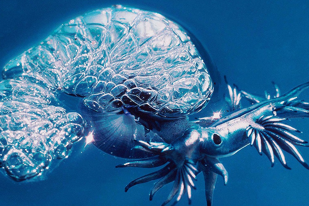 ❬ BACK TO STORIES Instagram Twitter Facebook Youtube THE BLUE FLOATING COMMUNITYTHAT ALL EAT EACH OTHER INTRODUCTION There is no realm within the vast assemblage of marine plankton that we have studied in greater detail and depth than the group that we call the ‘Blues Brothers’. This is a community of ever drifting surface-hugging blue and purple creatures of extraordinary beauty and mystery, and one which periodically drifts on westerly gale force winds and currents from the mighty Gulf Stream, to end up stranded on our most westerly shores, particularly the beaches of Cornwall. GLAUCUS TO VELLELA Though much more refined than Janthina when devouring prey, Glaucus, the Blue Sea Slug takes no prisoners when it encounters Velella, Porpita and Portuguese Men-O-War, or the sargassum anemone. Glaucus eats them all, and uses for its own protection the stinging cells of their prey. They simply move the stinging cells to their finger tips, where they can fire them in anger… PORPITA Porpita resides on the underside of the ocean’s surface, whereas Velella sits on top, with tentacles tipped below. Porpita sweeps its tentacles vertically down periodically. Porpita is a Chondrophoran, a modified single Hydroid polyp. The team are arguably some of the first to recognise multiple colour morphs. GLAUCUS TO PORPITA The Blue Sea Slug, Glaucus, feeds avidly upon Porpita, as well as other members of the Blues Brothers Group. PHYSALIA A full grown Physalia colony can have a float 250mm long and around ten tentacles that extend to thirty or forty metres, packed with powerful and dangerous stinging cells along the entire length. JANTHINA Blind and incapable of swimming, Janthina. The Purple Bubble Raft Snail, has to rely on wind and wave driving it to within a few millimetres of its Velella prey before it can effect capture and enjoy a meal. There are thousands of stories that can be told about the complex network of relationships that occur between the ‘blues brothers’ – to name a few: Janthina eat Glaucus – Glaucus eat Physalia, Vellela and Porpita. Janthina also feed on Porpita, Vellela and Physalia. Physalia, Vellela and Porpita all feed on plankton and small fish. These various stories we intend to tell physically and digitally, through our venues around the world. ❬ BACK TO STORIES Instagram Twitter Facebook Youtube 3 Sailed Triangle or a Shovel Nose Ray? Read More A Titan Prank and Spear Gun Mishap… Read More