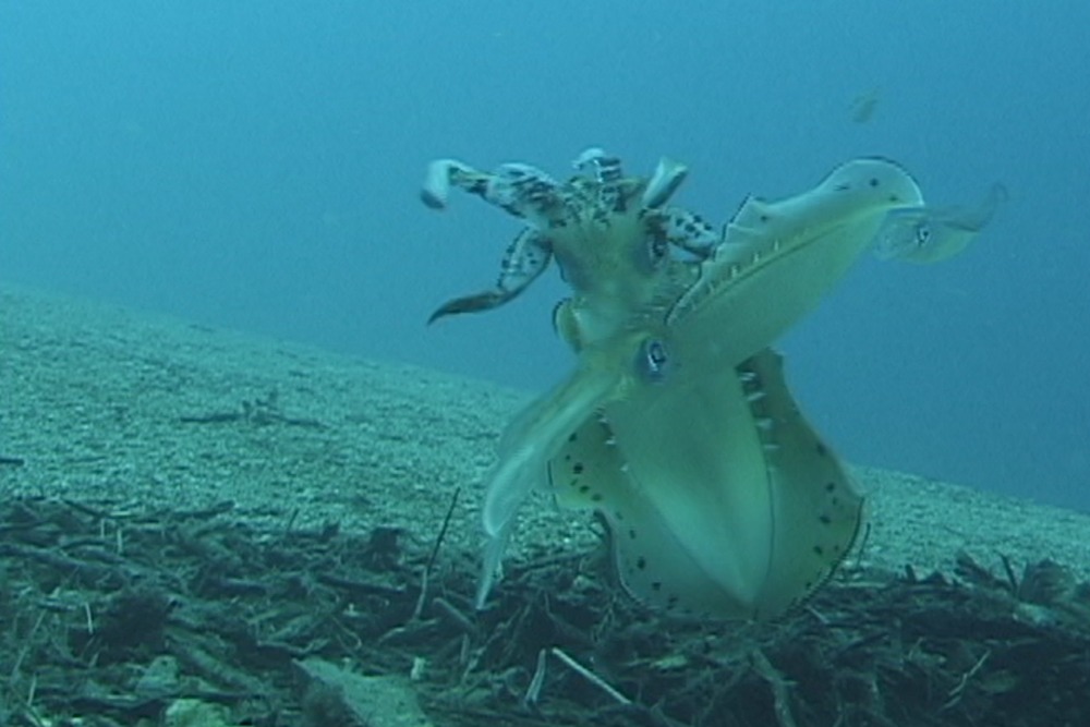 ❬ BACK TO STORIES Instagram Twitter Facebook Youtube EXOTIC AGGRESSION – BALLOON PROTECTING SQUID The Broadfin Reef Squid is found throughout tropical shorelines, all round the Pacific. Sepioteuthis is the fastest growing of any invertebrate species, up to 600grams in half a year. They are also very short lived, seldom exceeding 300 days. http://openoceangroup.org/wp-content/uploads/2023/09/SQUID-AGGRESSION-1.mp4 Females lay tethered egg capsules with about five to ten eggs per capsule. Adults guard the eggs and display quite aggressive behaviour towards any species that approach the beds of communally laid eggs, attached to bottom rocks or secure weed or old coral. http://openoceangroup.org/wp-content/uploads/2023/09/SQUID-AGGRESSION-2.mp4 The nerve axons of these squid are used extensively in biomedical research. Their capsules contain up to ten or so eggs, but the first embryo to hatch goes round killing and eating the remaining eggs or younger siblings in that same capsule. These Squid feed mainly on shrimps and prawns of several species. http://openoceangroup.org/wp-content/uploads/2023/09/SQUID-AGGRESSION-3.mp4 ❬ BACK TO STORIES Instagram Twitter Facebook Youtube 3 Sailed Triangle or a Shovel Nose Ray? Read More A Titan Prank and Spear Gun Mishap… Read More